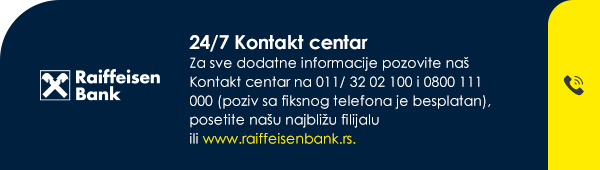Za dodatne savete, informacije, komentare ili sugestije pišite nam na adresu info@raiffeisenbank.rs.